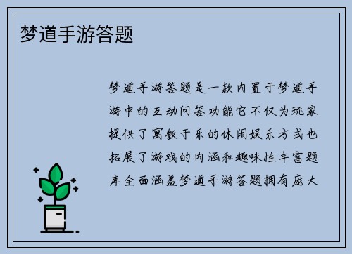 梦道手游答题是一款内置于《梦道》手游中的互动问答功能。它不仅为玩家提供了寓教于乐的休闲娱乐方式,也拓展了游戏的内涵和趣味性。 丰富题库,全面涵盖 梦道手游答题拥有庞大且丰富的题库,涵盖了历史、地理、文...
