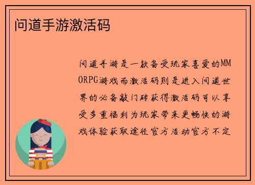问道手游是一款备受玩家喜爱的MMORPG游戏,而激活码则是进入问道世界的必备敲门砖。获得激活码可以享受多重福利,为玩家带来更畅快的游戏体验。 获取途径 官方活动:官方不定期举办各种活动,如签到活动、答...