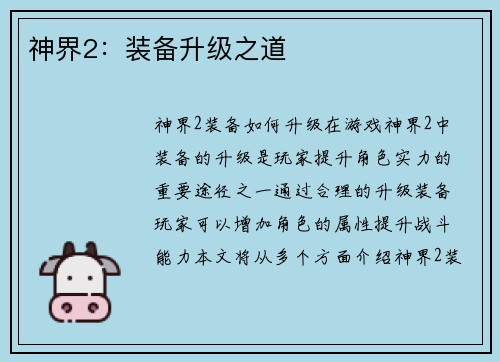 神界2:装备升级之道